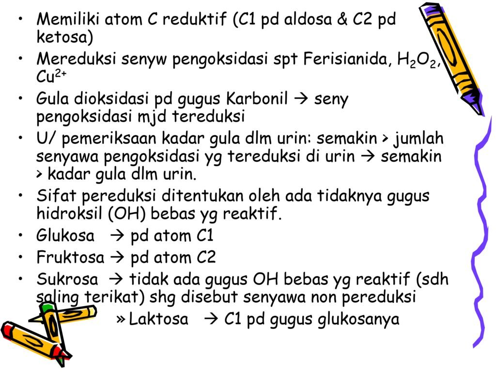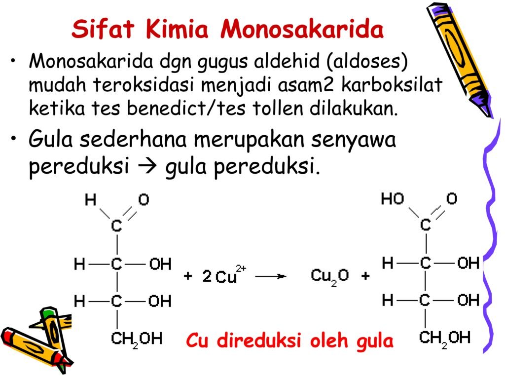 Aldosa memiliki sifat pereduksi karena gugus aldehidnya mudah teroksidasi menjadi gugus karboksil (-COOH).