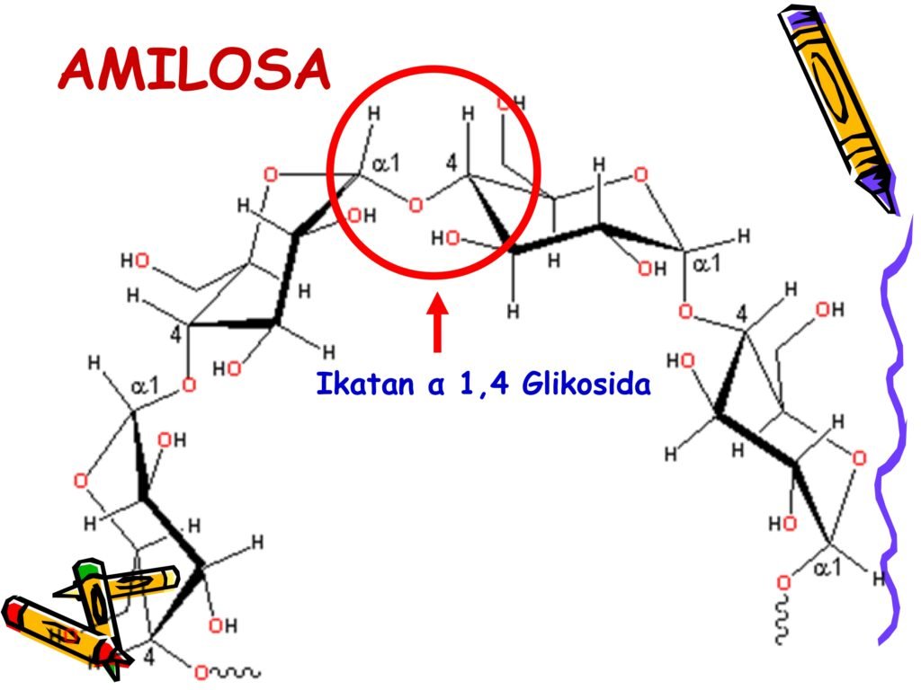 ➡️ Polisakarida dengan ikatan α → fleksibel dan mudah dicerna → berperan dalam penyimpanan energi.